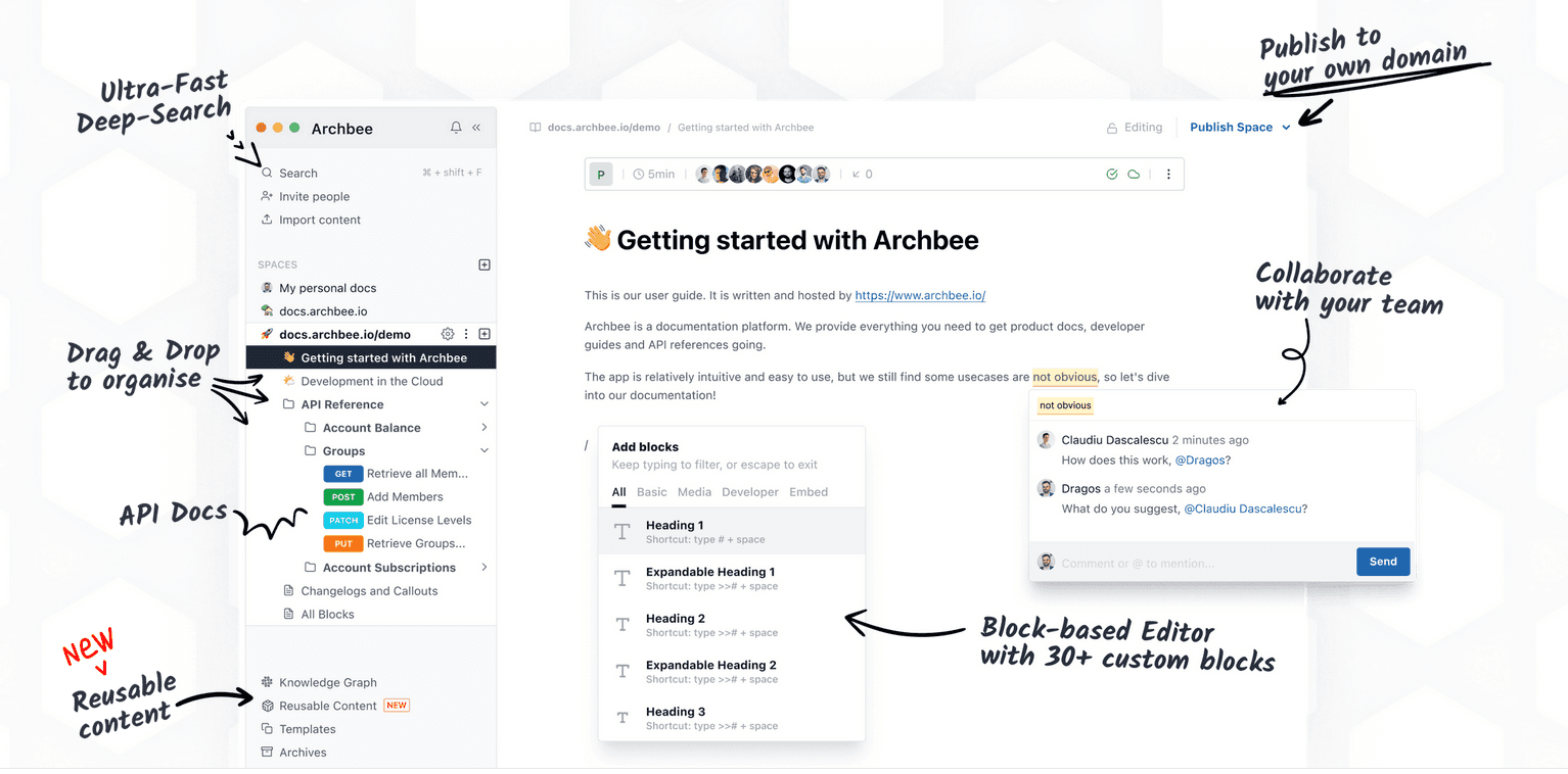 Archbee’s collaboration features will also be useful if you work within a team.