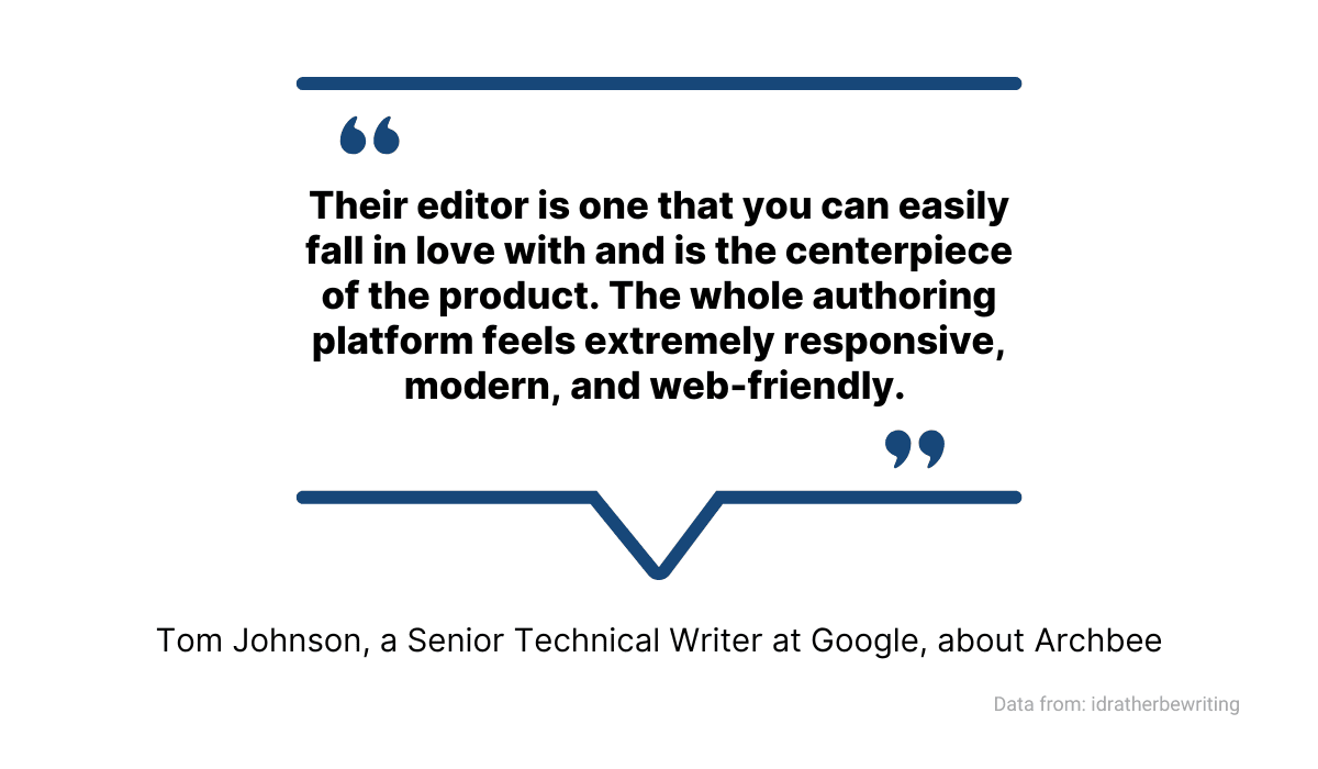 Archbee’s value to technical writers didn’t go unnoticed by Tom Johnson, a Senior Technical Writer at Google and one of the most prominent bloggers in the industry.