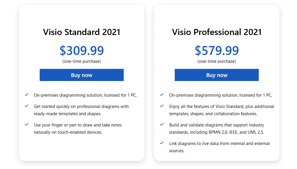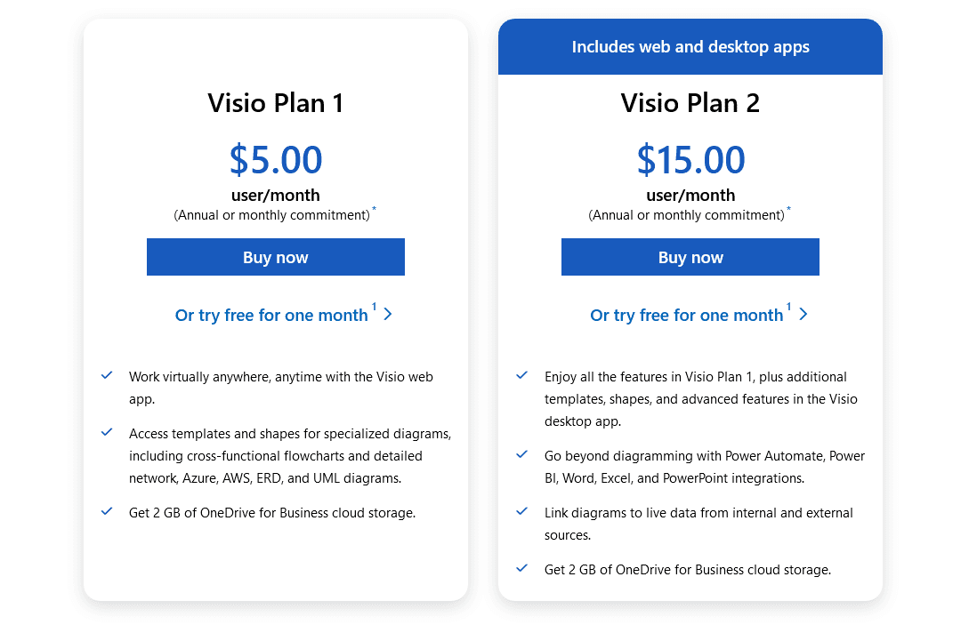 Visio is available in several pricing options. You can get it as a part of the Microsoft 365 subscription or as a part of one of the plans you can see below.