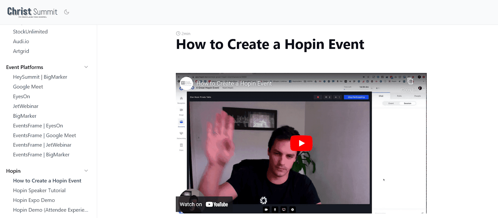 For instance, that’s what Christ Summit did in their technical documentation about creating Hopin events.