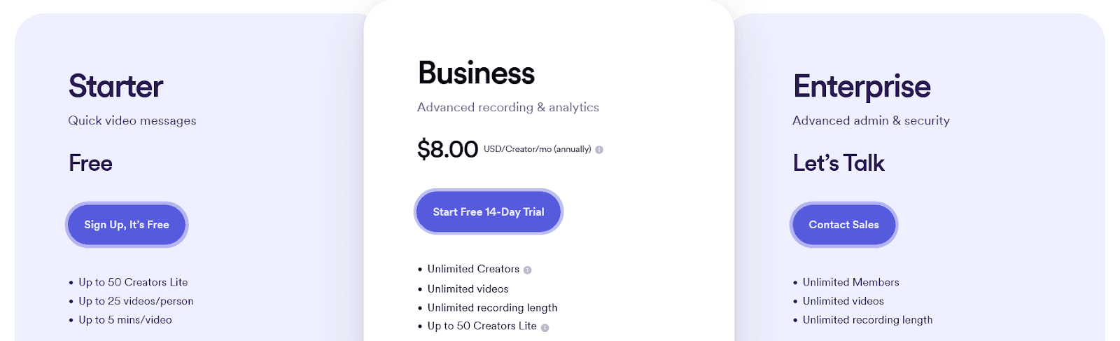 The tool is available in the Starter, Business, and Enterprise plans, each with its own price and a list of features.