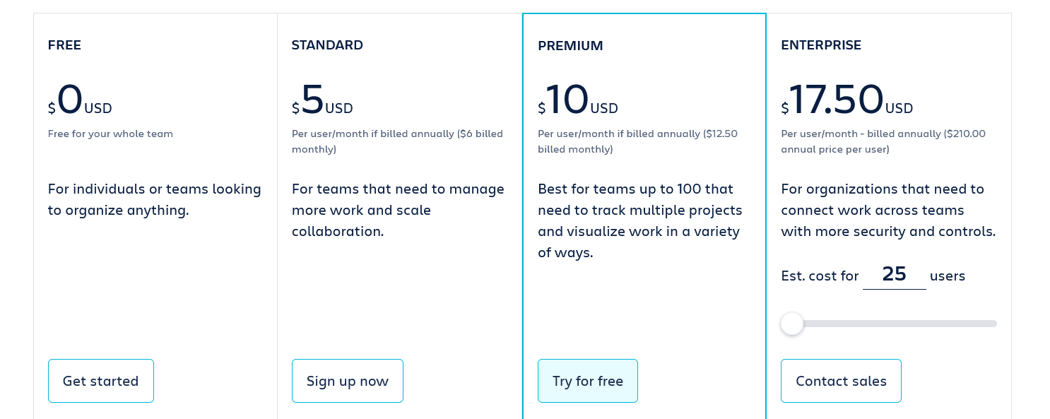 It’s free with basic functions, the Premium plan starts at $12 a month, and the Business plan starts at $15 per user per month.