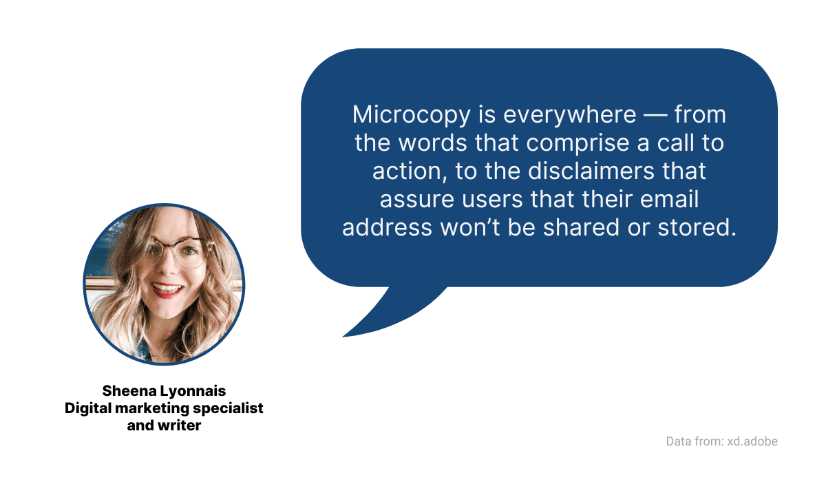 And, as Sheena Lyonnais, a digital marketing specialist and writer, points out, examples of microcopy are all around us.