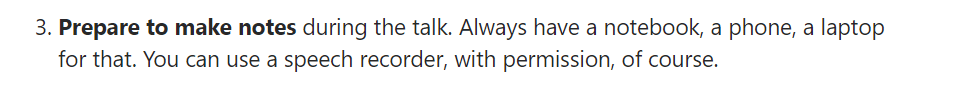 Parker also suggests preparing note-taking equipment, such as a notebook or a phone.