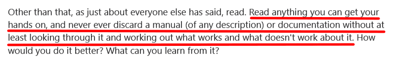 As Lana Brindley, Documentation Manager at Timely, pointed out on Quora, there’s something to learn from anything you read.