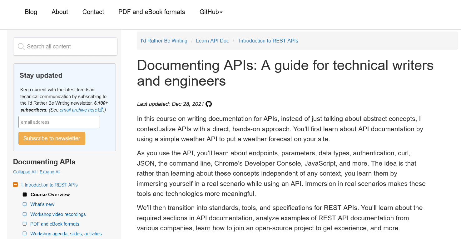 For example, I’d Rather Be Writing is a blog by Tom Johnson, a Senior Technical Writer at Google.