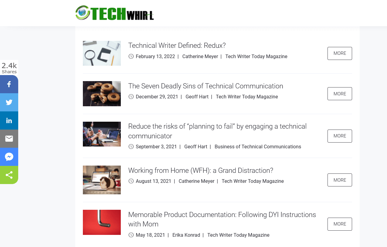 It has articles on improving technical writing skills, tips and tricks, beginner guides, etc.
