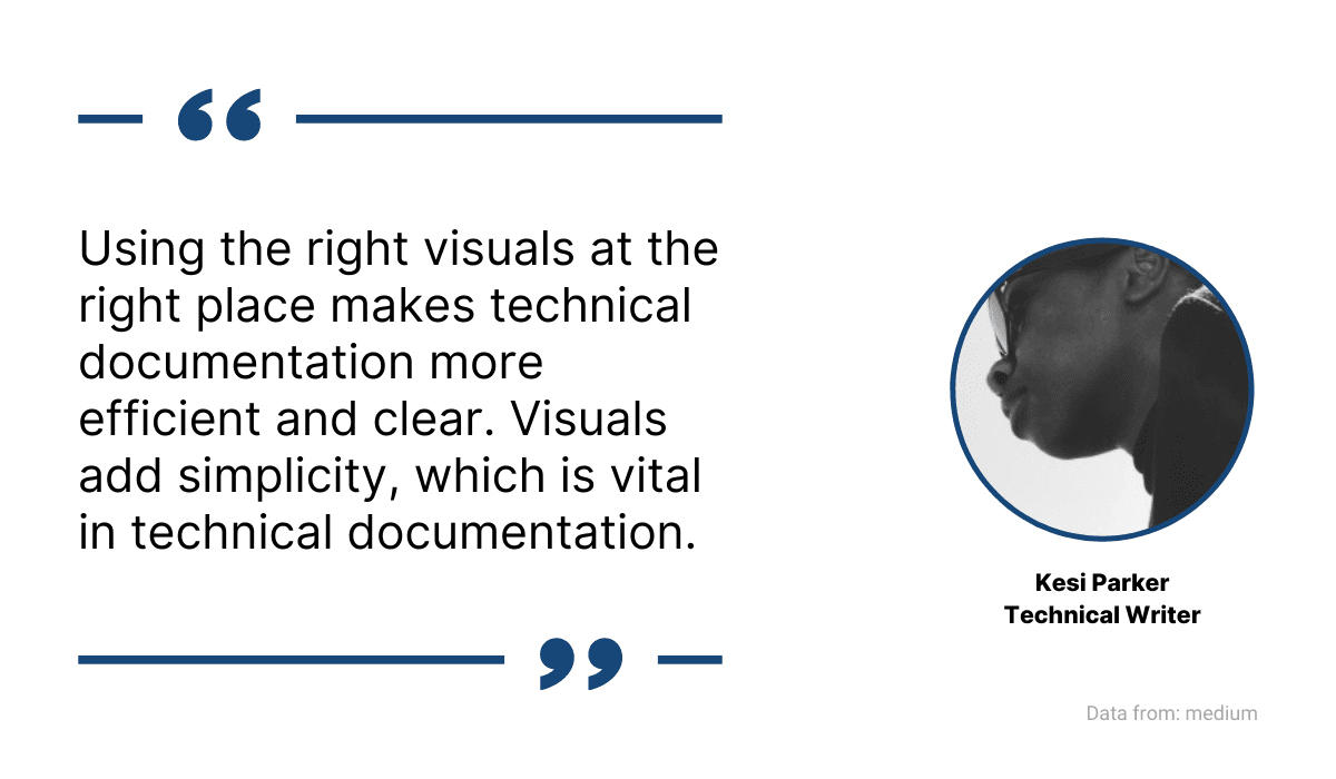 As Kesi Parker, a technical writing influencer, puts it, visual elements make technical writing more efficient.