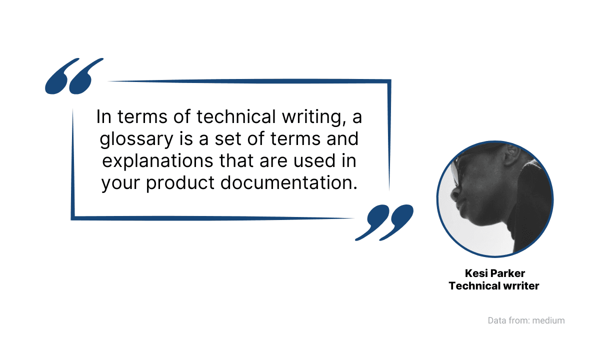 A glossary is an excellent tool for that. Here’s how technical writer Kesi Parker explains it: