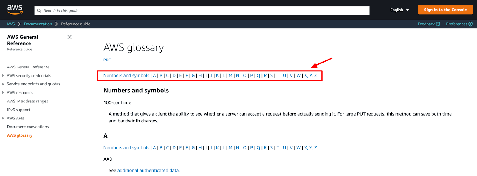 For instance, Amazon Web Services has a glossary containing hundreds of terms in alphabetical order.