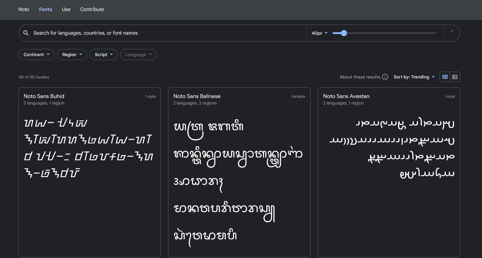 You can filter them by continent, region, script, and language, so it’s easy to find a font that suits your needs.