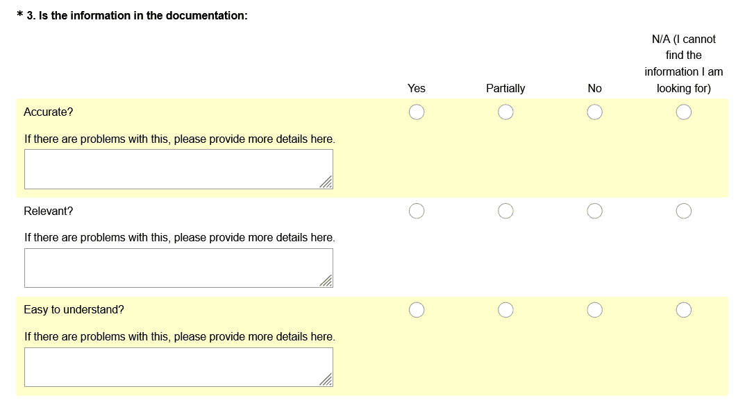 It’s a simple binary choice, but the amount of “yes” and “no” answers can give you valuable information about the quality of your documentation.