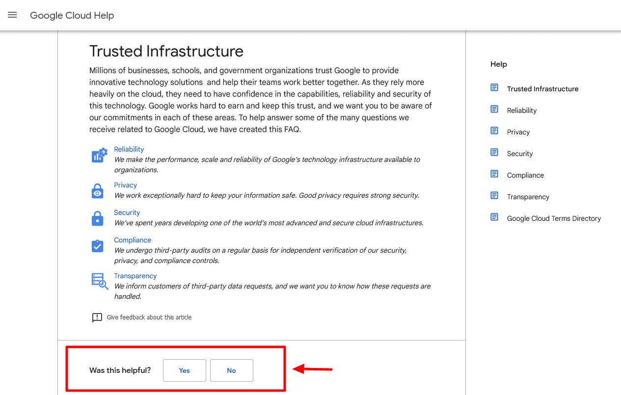 Above, you can see how Google implemented that in their Google Cloud Help documentation.