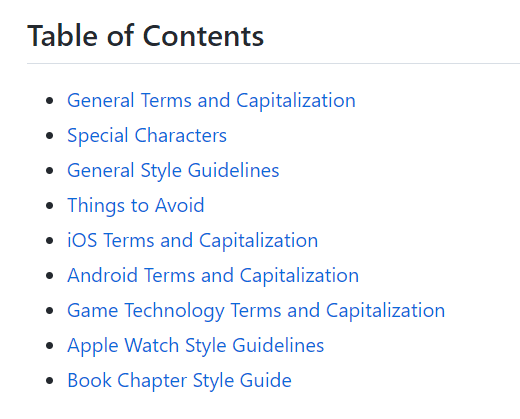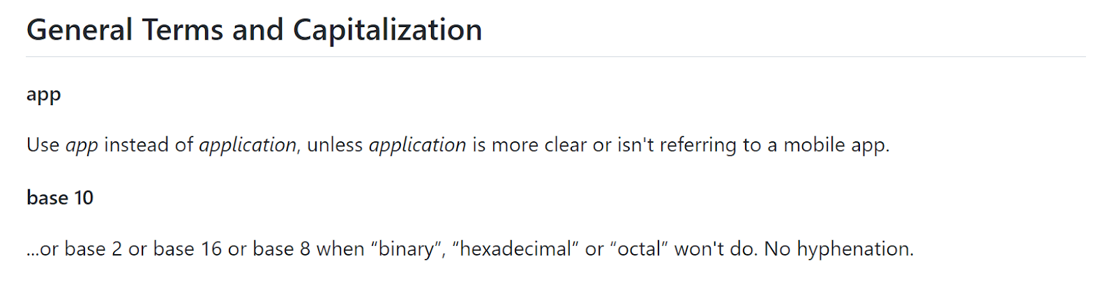 For instance, the style guide for authors at raywenderlich.com, publicly available on GitHub, clearly defines the language and vocabulary to be used.
