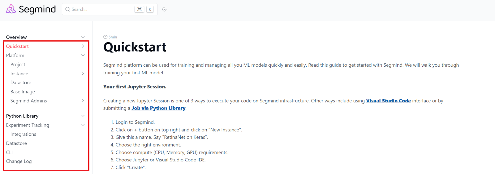 Here’s how Segmind, an MLOps platform, named the sections of their technical documentation that was built with Archbee.