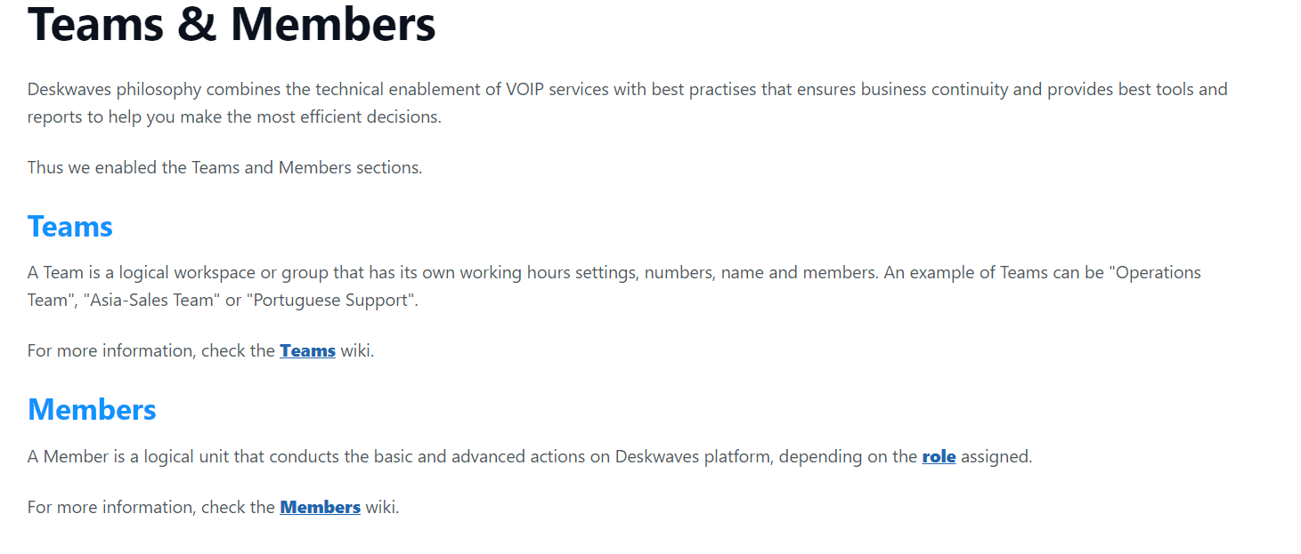 In the Members section, the readers can click the word role, which is linked to the section that explains the three types of roles: agent, admin, and supervisor.