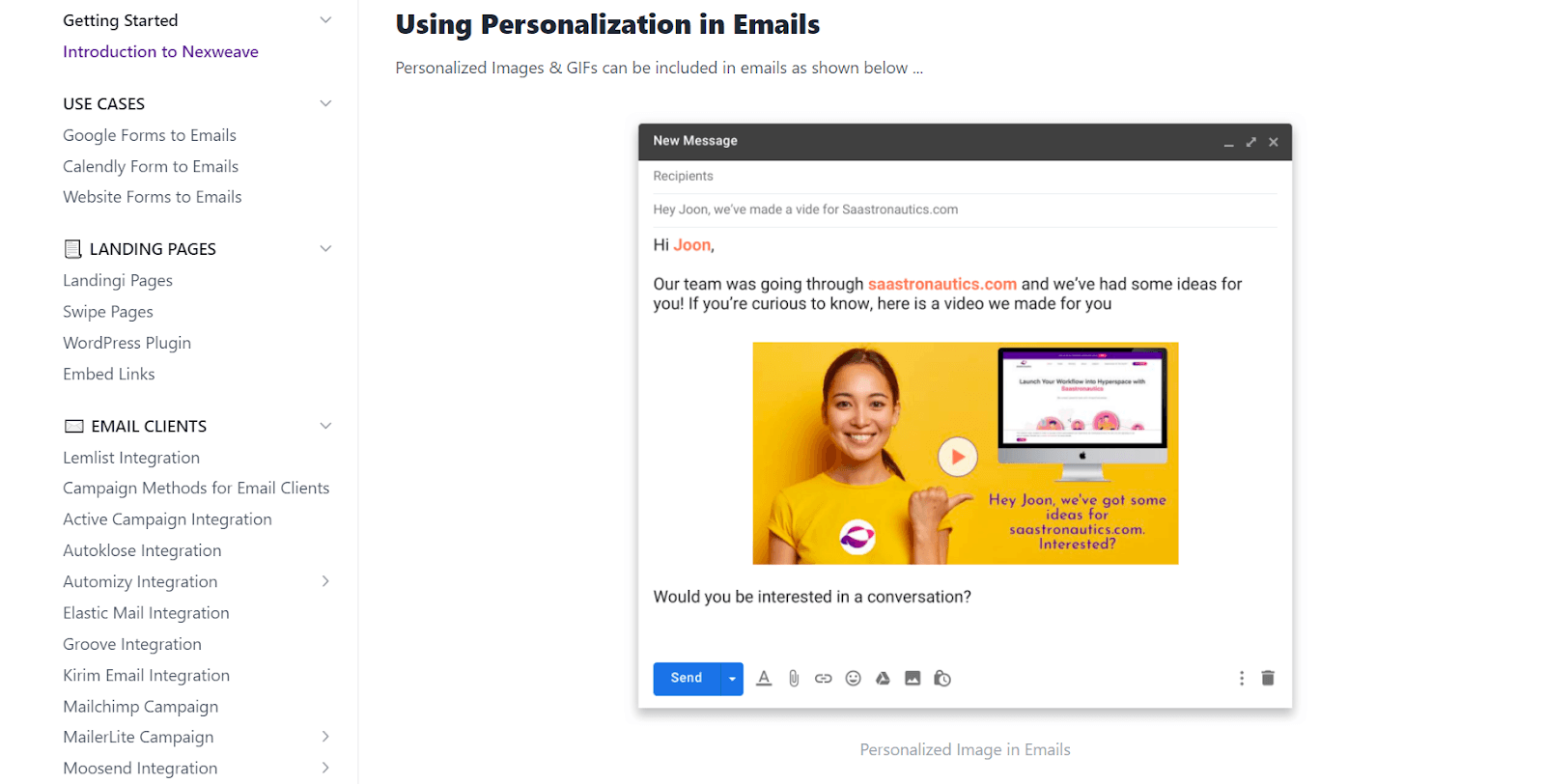 Nexweave, a tool for creating personalized images, supplements its documentation with numerous screenshots demonstrating how clients can use the product.
