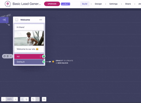 The GIF below shows the process of creating a bot on Landbot to be used with Nexweave personalized images.