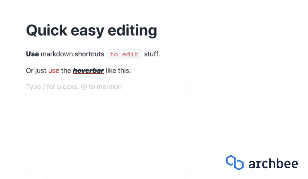 Archbee makes formatting and editing a breeze by letting you write in markdown for maximum speed.