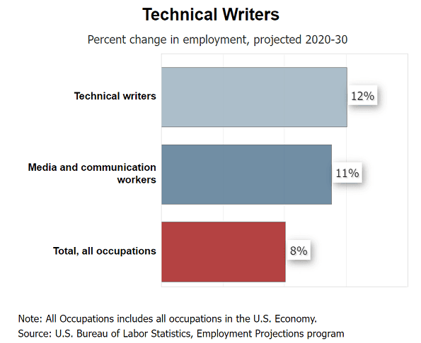 Yet, the US Bureau of Labor Statistics projects that the tech writer employment rates will grow by 12% by 2030.