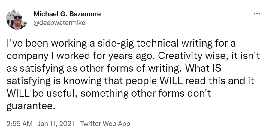 Many technical writers take pride in this aspect of the job.