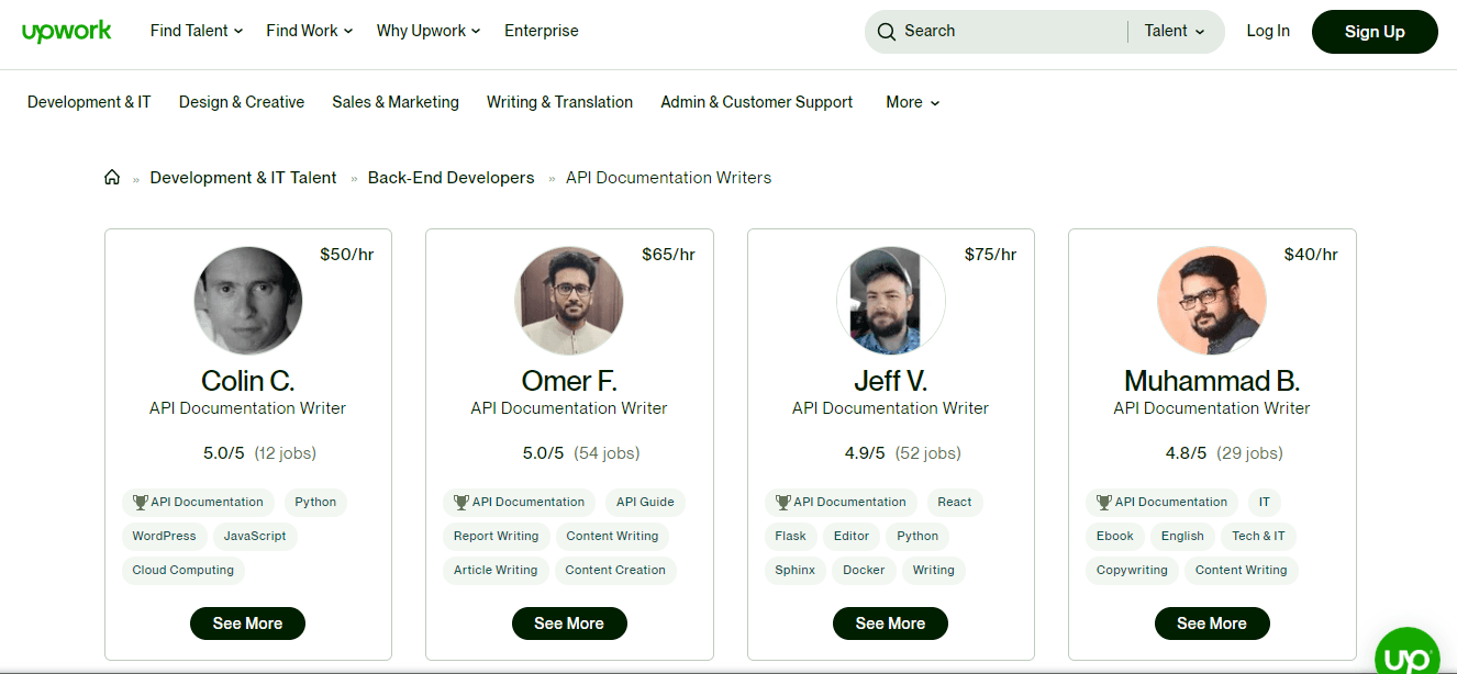 With the rise of freelancer platforms, companies can hand-pick the greatest experts in the world and rely on customer reviews and comprehensive portfolios to help them decide on a perfect technical writer for their team.