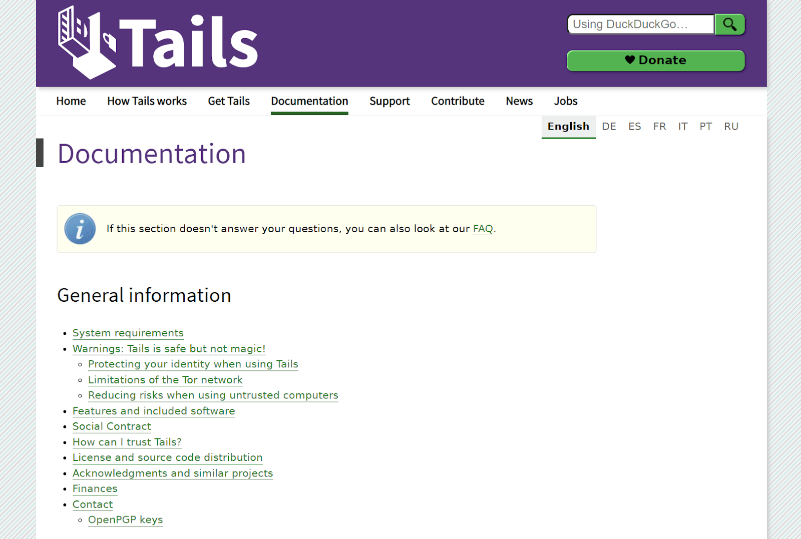 This is what the end-product, the documentation intended for Tails’ users looks like. Every article was developed with the above persona in mind.