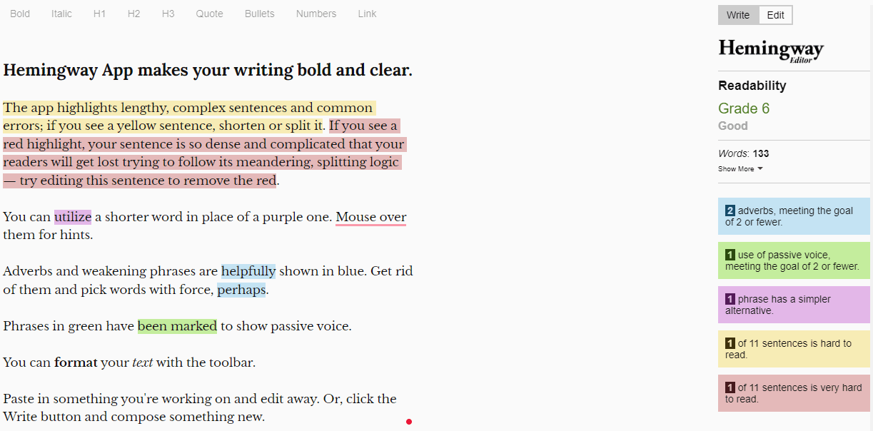 The app suggests edits and marks the sentences that might be difficult to understand for your readers. It also lets you determine the readability of your text.