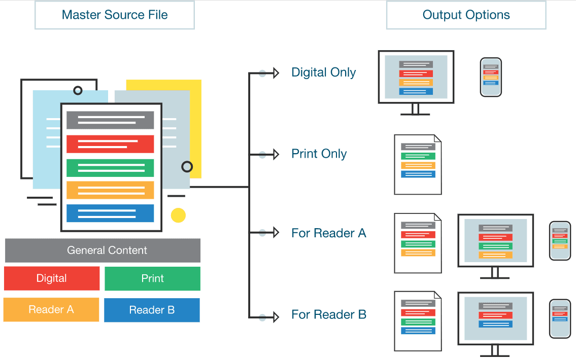 Moreover, using a single source makes creating content easier. Instead of starting anew with each document, the writers can use the main file and edit it to suit the readers’ needs.