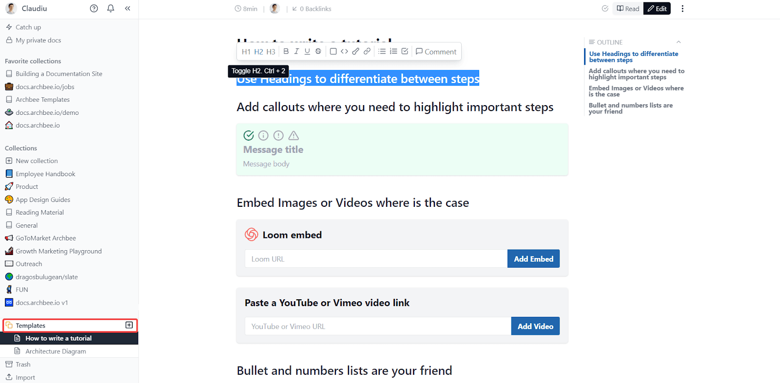 In other words, Archbee reduces the risk of formatting issues that come with copying and pasting text and visual elements to different platforms.