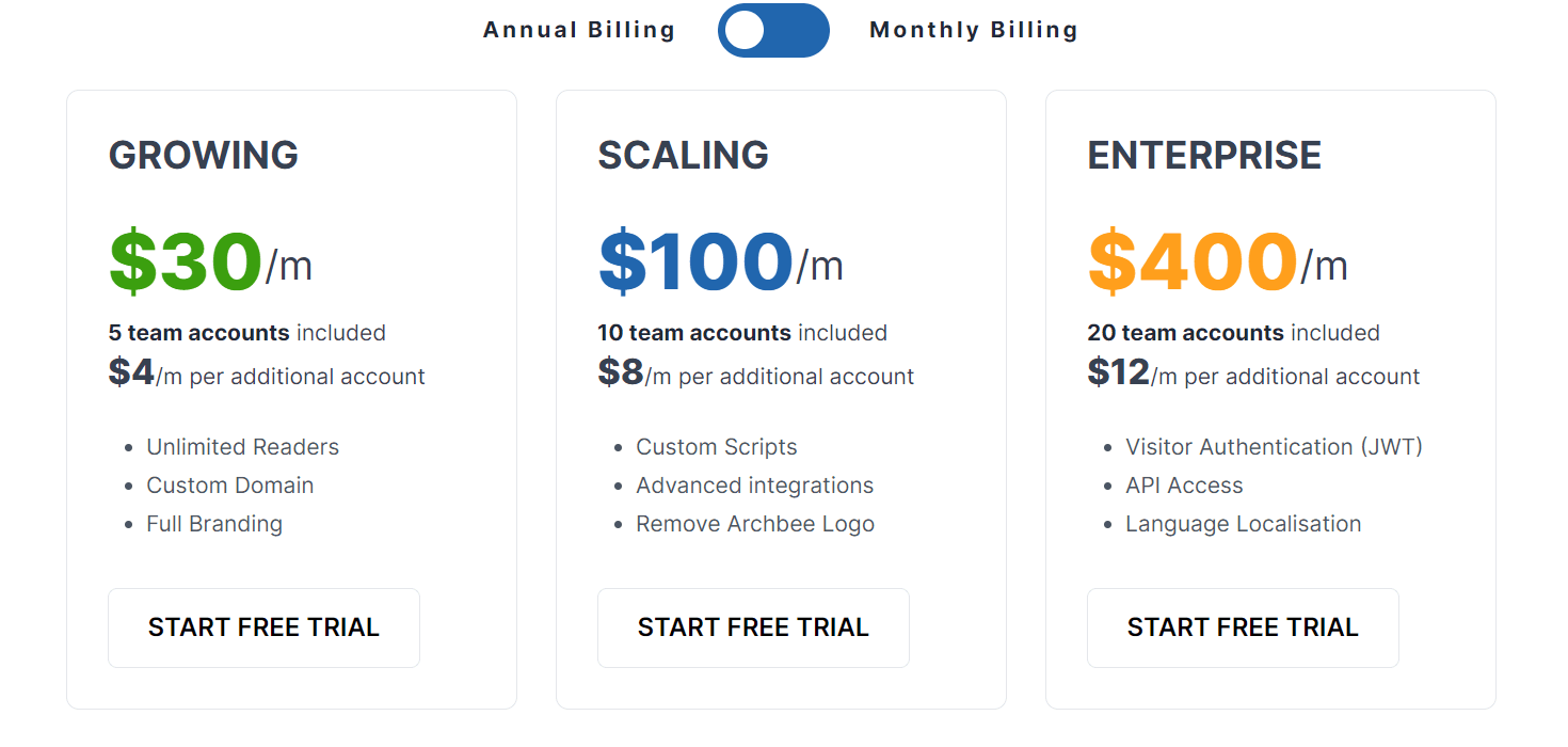 If you’re not sure if the platform is right for you, you can sign up for a 21-day free trial and see firsthand why so many tech companies use Archbee to create and share their documentation.