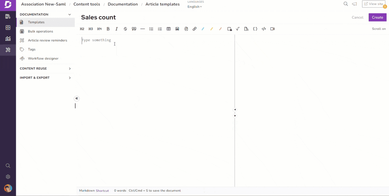 Document 360 is a cloud-based documentation tool you can use to build knowledge bases and share them with customers.