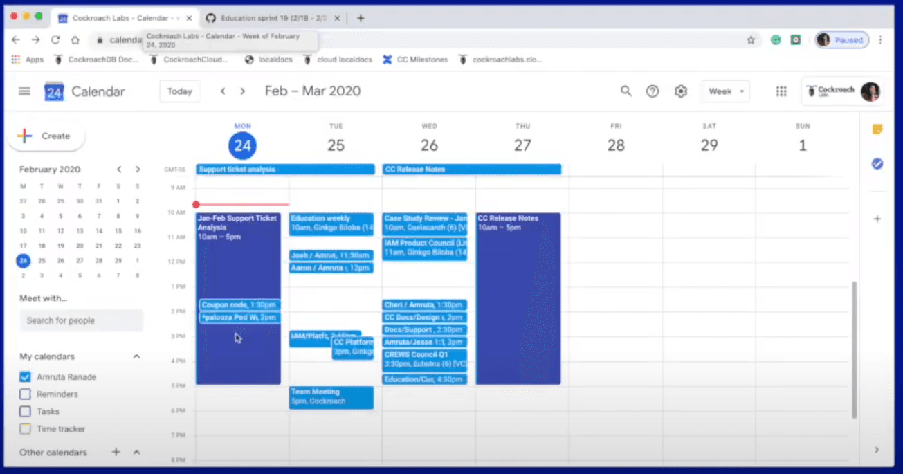 First of all, note that every week starts with planning. Current projects are divided by document phase, and then a schedule for the entire week is created in Google Calendar.