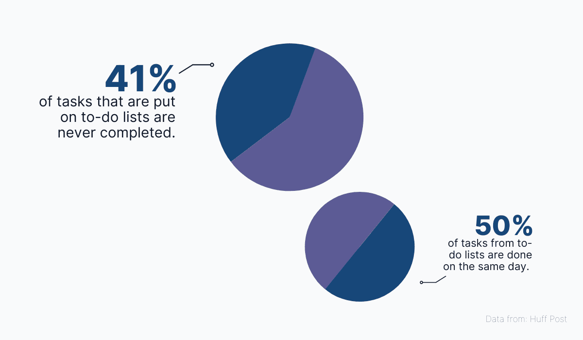 In fact, studies have shown that almost half of the tasks from to-do lists never get completed.