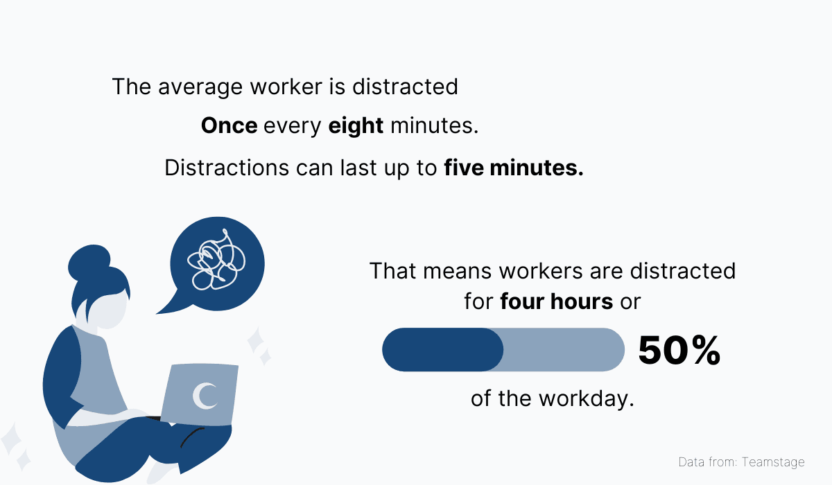 Being distracted at work from time to time may not seem like a big deal. However, the problem is that distractions can compound and put entire projects behind schedule.