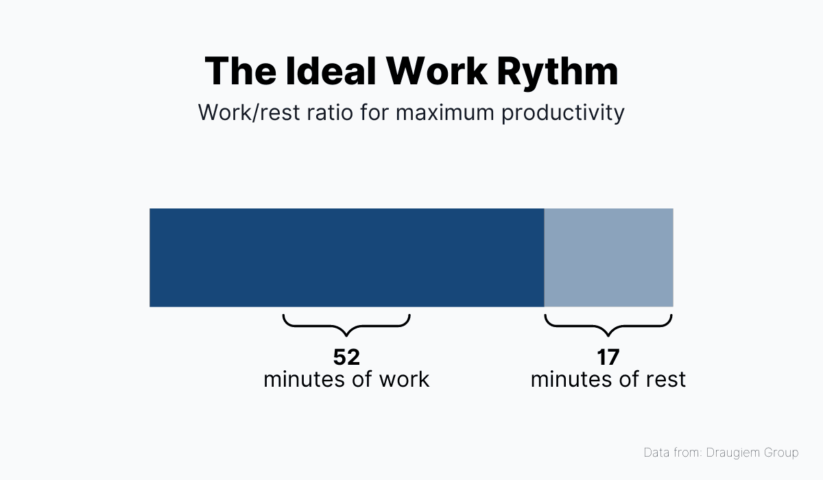 Why this exact ratio? Well, the researchers saw that employees who used this rhythm for their work were able to achieve near-perfect focus and productivity for the time they spent working.