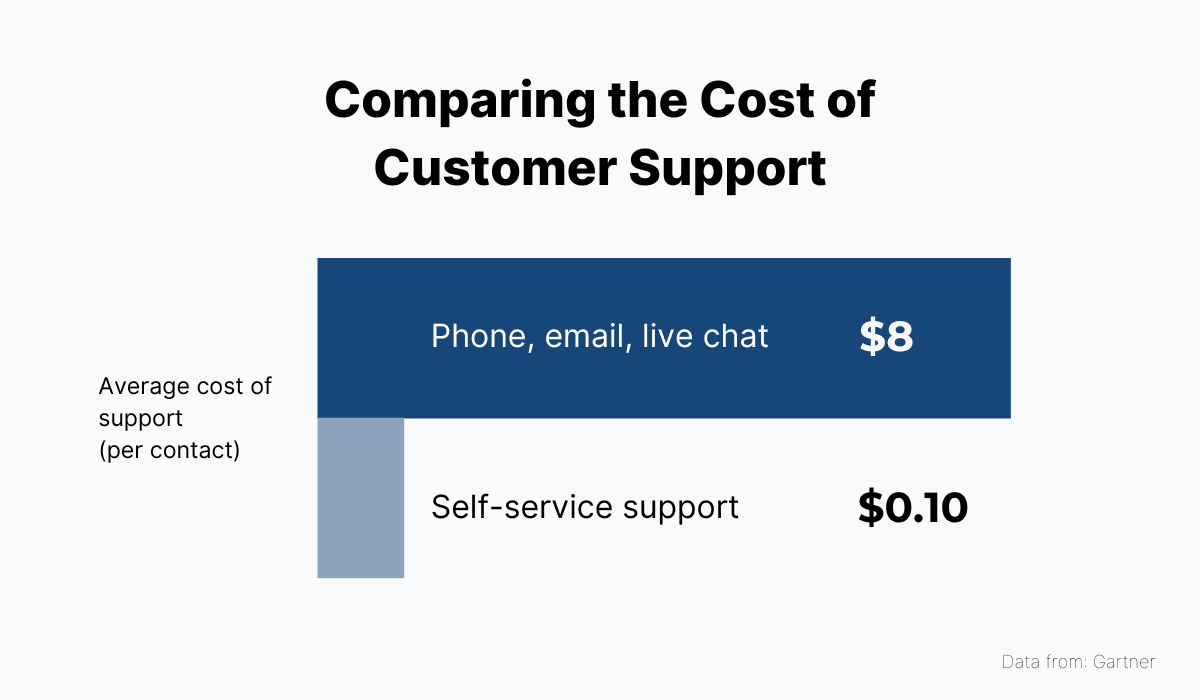 To get back to our example, if a certain number of users want to know how to change their password, but only a small percentage of them call your support team to ask, with the majority finding the answer in your documentation, you won’t have to hire as many support reps.
