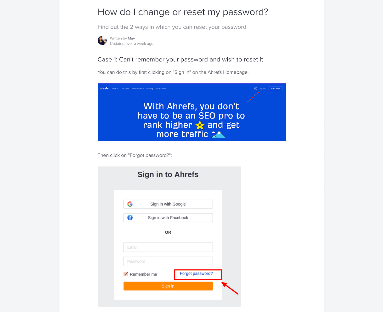 For example, have a look at Ahrefs’ user documentation below. This is the part of the user documentation that concerns account access and billing.