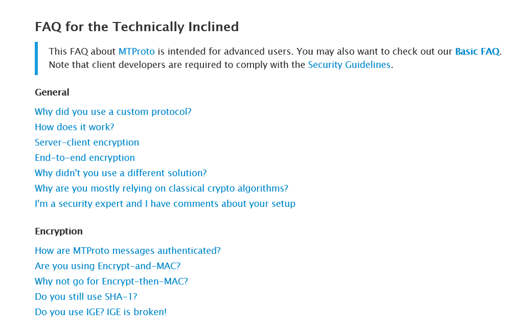 For instance, Telegram, a popular messaging platform, provides detailed user documentation with useful information, both for beginners and the more technically-savvy users.