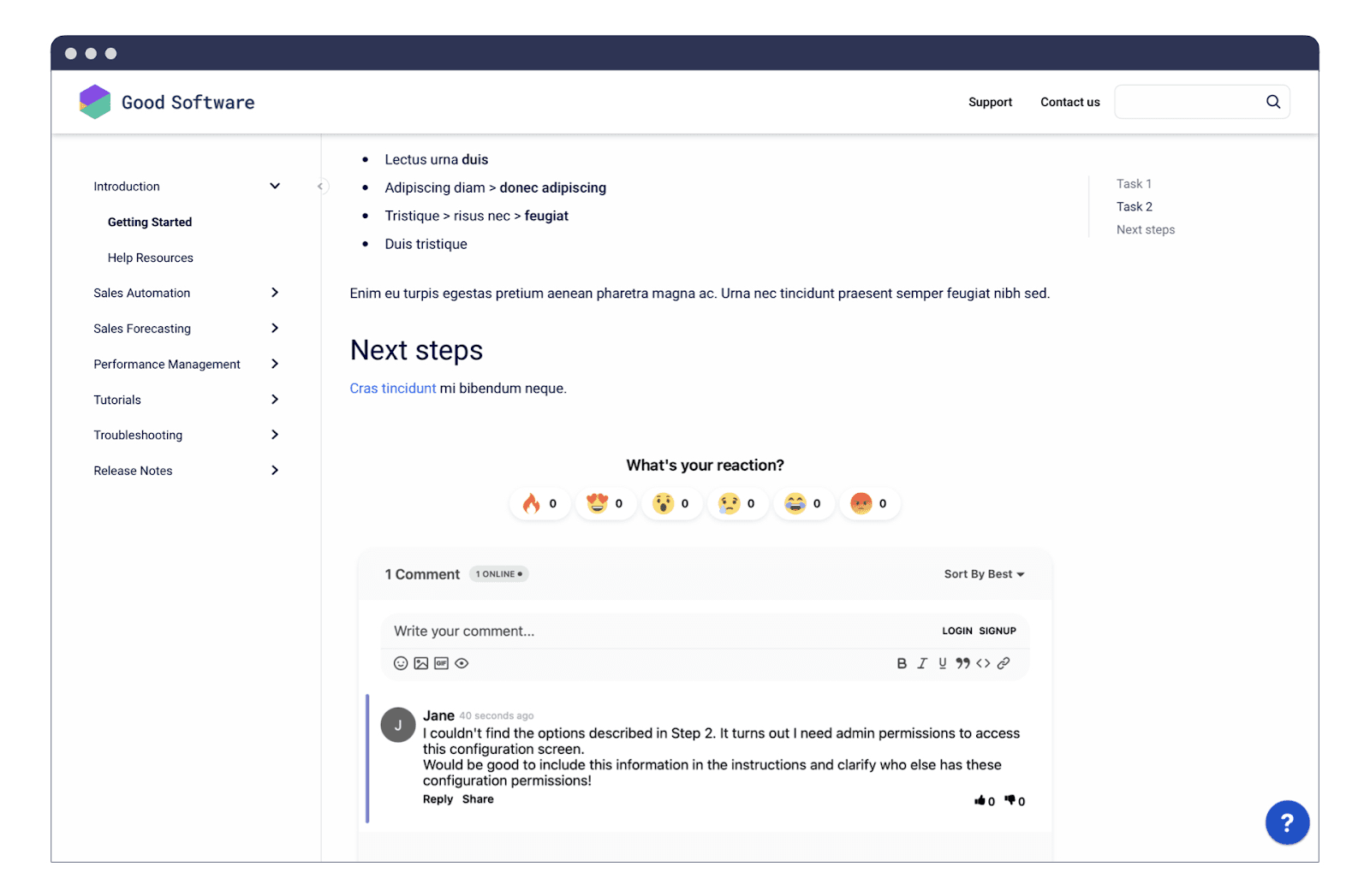 When users are allowed to comment on your documents, they’re able to provide you with feedback while their experience with your documentation is still fresh in their minds.