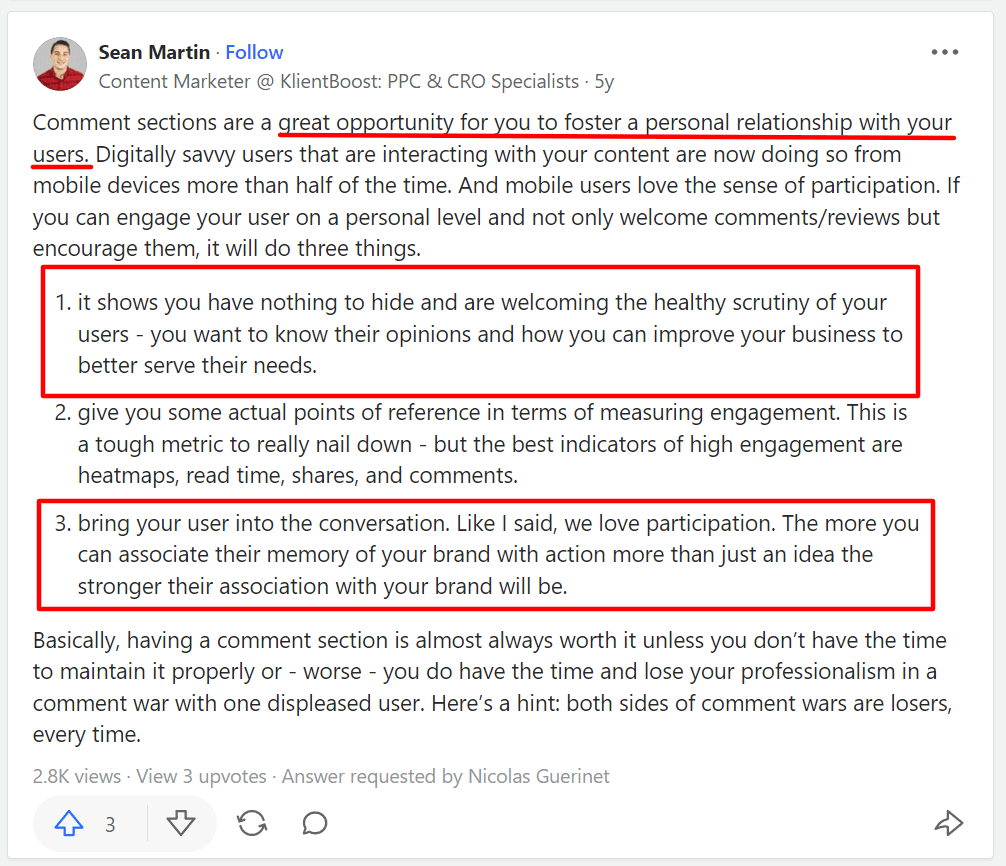 Sean Martin, a marketer at the KlientBoost agency, sums it up well: