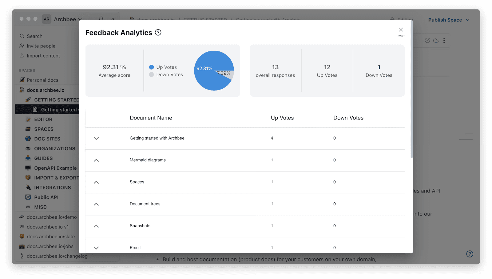 For example, our own documentation software, Archbee, allows document owners to track how helpful the documentation is to users.