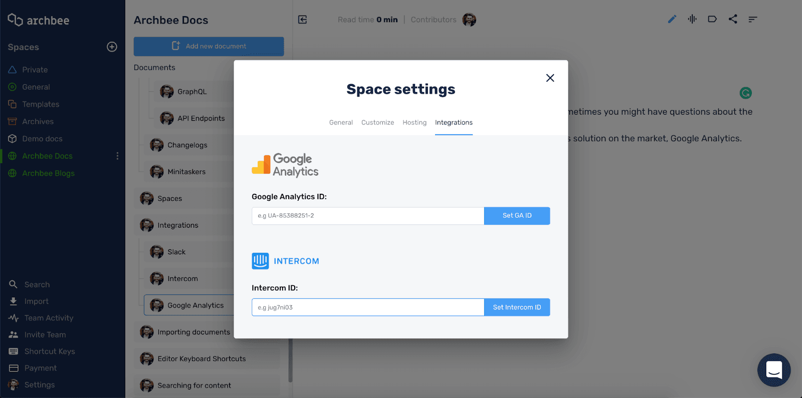 And if that’s not enough data for you, Archbee also has a Google Analytics integration that will allow you to take a deeper dive into the performance of your documentation.