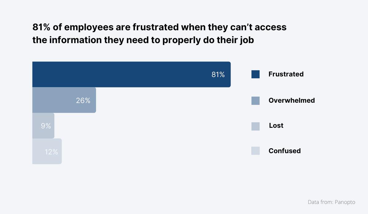 According to a Panopto study, an impressive 81% of employees report being frustrated when they are unable to find the information they need to finish their tasks.