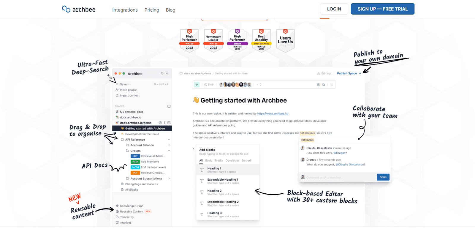 For example, Archbee offers integration with 20 tools, such as Figma, Jira, Slack, Airtable, Trello, as well as Google Analytics, which not only saves time and money but also helps companies to improve their overall efficiency and accuracy.