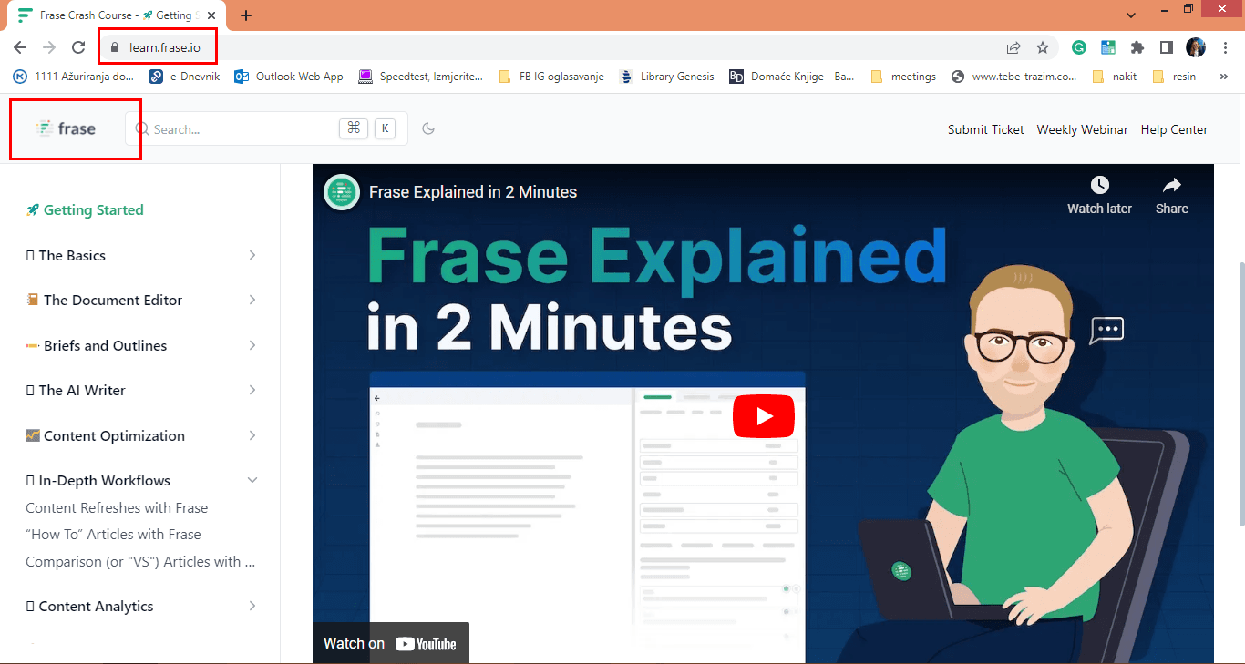 And because it's a custom domain, you can easily use your company's branding on the site, as you can see in the example of Frase, a software for creating SEO content that uses Archbee to guide users through the product.
