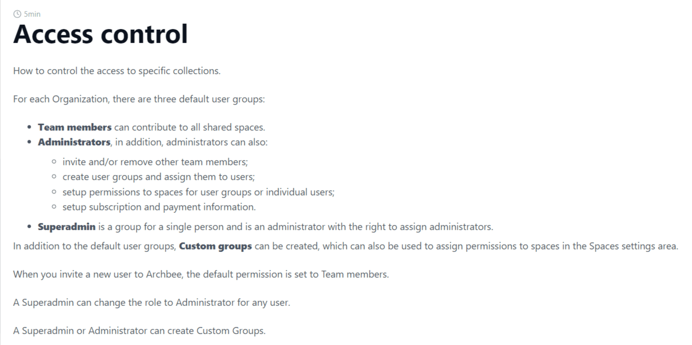 As you can see from the picture, by assigning roles of team member, administrator or superadmin, you will gain more control over your KMS, it will be up and running in no time, and everyone will know what their responsibility is.