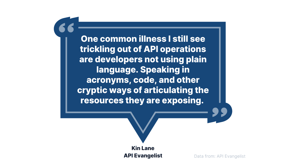For example, in the context of API (Application Programming Interface) documentation that typically contains a lot of specialized technical terms, Kin Lane says: