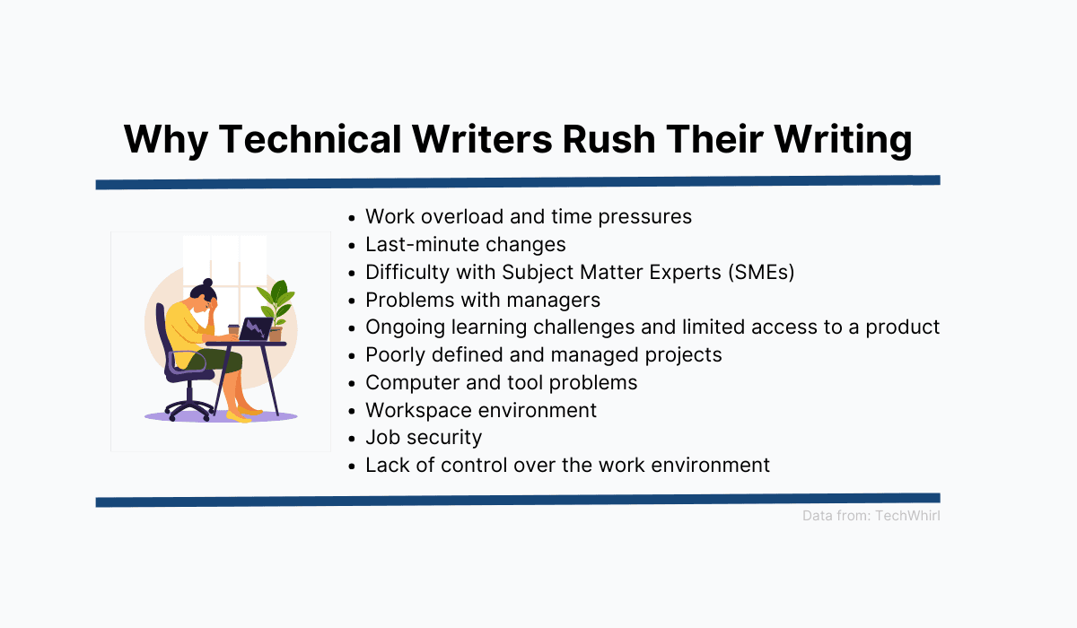 So, let’s take a closer look at why technical writers can feel pressured to rush their writing: