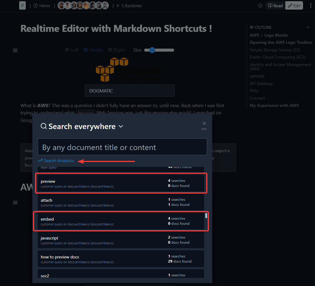 If there are multiple hits for your keyword, Archbee will show them all in seconds.